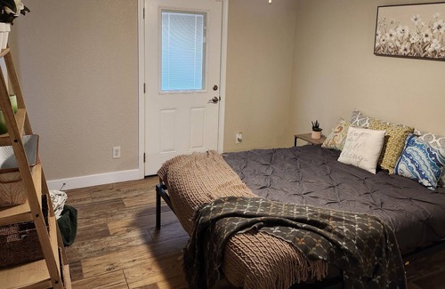 Delightful corner lot. Kitchen is fully equipped, backyard has firepit, BBQ, dog relief station, and sitting area. Smart TV in living room and a fireplace. Fully stocked Bathrooms. Washer and Dryer in Garage. Full use of Garage and parking area to keep all power sports safe.