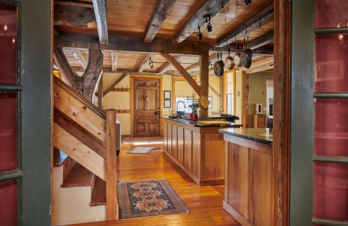 Located in the lovely Berkshire mountains, part of this bright, sprawling property was built in 1866 as a schoolhouse. It has since retained its historic charm while including all the updated comforts of home. Play pool, sip cocktails at the antique 1920s bar, sing songs around the outdoor fire pit, cook dinner in the huge kitchen or enjoy grilling on the porch in the sun. Skiers and hikers will love the area, and with over five acres of wooded land to explore, the property is perfect for a vacation with friends or family reunion.