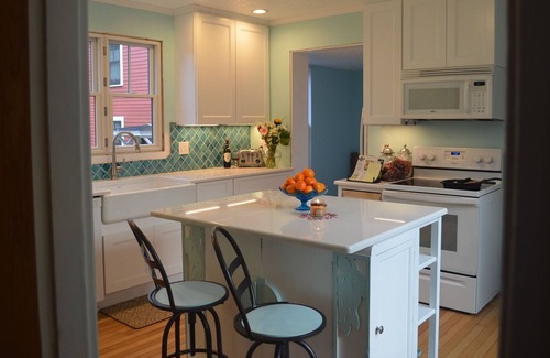 Fully furnished home available in one of Brunswick's most desirable neighborhoods in historic downtown: two blocks from the center of town, a 10 minute walk from Bowdoin College campus. This home has a first-floor master suite, with a bathroom and laundry off the kitchen. Renovated kitchen has quartz countertops and island. Large dining room opens to a living room with sunny windows and a wood stove. Wood stove and lovely yard.