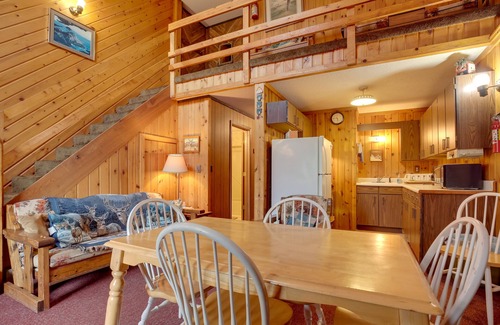 Boasting ski slope views, easy access to lakes, and a prime location near hunting grounds, this 3-bedroom, 1.5-bath vacation rental chalet offers travelers a year-round retreat on Michigan's Upper Peninsula. Spend your days enjoying the best of Iron River, such as swimming and fishing in nearby lakes, exploring ATV trails, or hiking to a stunning waterfall. After, relax on the deck to watch the sunset.