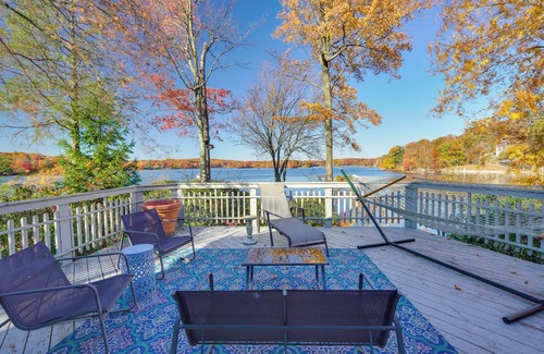 Unwind on a majestic peninsula on Highland Lake when you stay at this 4-bedroom, 2.5-bath vacation rental. Here, location is everything and the views never get old! The waterfront 1,700-square-foot home for 10 is surrounded by water on 3 sides. It boasts a private dock, a 2-tiered patio, a deck, a gazebo, and more. Ready to venture out? Hike a scenic trail or caste a line at the Wawayanda State Park. Book today!