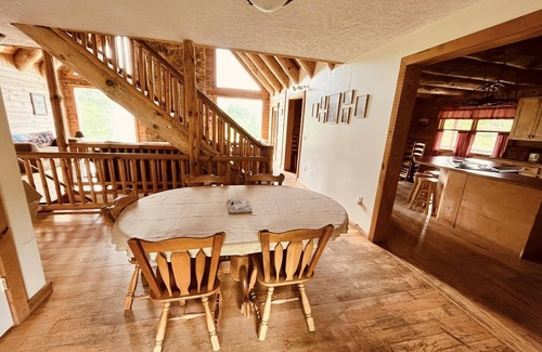 Knowing the above info, please rest and discover the beauty of the Blue Ridge Mountains in our 4500 sq. ft log cabin nestled on 120 acres of private land in the midst of the Jefferson National Forrest. Located just north of Marion, Virginia, 22 miles west of Hwy 77 (exit 52, Bland) on route 42, you will be able to hike or ride horses across many miles of local trails or the Appalachian Trail itself. This area of Southwest Virginia, known as the scenic rich “Blue Ridge Highlands”, is replete with historic beauty and offers something for all seasons. The world famous "Back of the Dragon" motorcycle stretch of Hwy 16 is only 3 miles west of our cabin on rte 42.