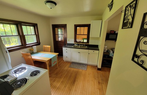 Steps away from the Cabin are trails and hills of the 25 acre mature forest. The Campfire area is light by torches and decorative lighting. Black River is a mere 1 mile hike through the forest. The new paved bicycle path a mile away down the bluff.
