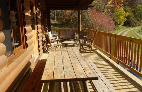 Secluded cabin on 200 acres with your own private lake. Relax on the large deck with a spectacular view of the lake and forest any time of day or night. Enjoy fishing in the lake, hiking the many miles of trails, swimming, or just relaxing on the beach. The lake is equipped with row boat and canoe. In the evening, enjoy a campfire in the fire pit. Perfect for a family vacation or a romantic getaway. Sleeps six with queen murphy bed in master bedroom: twin bunk beds; and queen sofa bed in living room. Fully equipped kitchen with dining area, 1 1/2 bathrooms, washer/dryer, ac, wifi, tv/vcr, deck and patio. Only 11 miles from galena with shopping, dining and many attractions. Maximum occupancy 6. Sorry, but no pets or smoking. Rentals are available april through november.