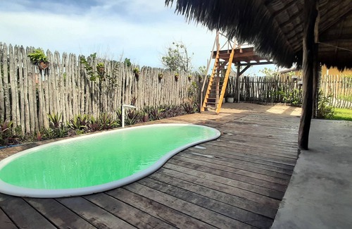 Yes, this Ponta do Anel cabin has a swimming pool. Check the Facility Overview section for details about the pool and other available facilities.