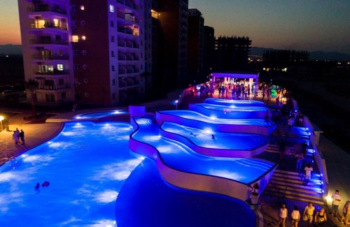 A place full of animated water slides, game room, climbing wall, Xbox and PS game room with 4 pools, Jacuzzi, sauna.