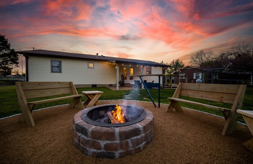 Every corner of this cozy, retro home was thoughtfully decorated with your getaway in mind! It has three bedrooms, two bathrooms, and comfortable seating, so there’s plenty of room for everyone. The 60s vibe kitchen is the perfect space for preparing your favorite meals or trying the local cuisine. Bad weather? No problem! Gather in the living room for a movie or game night-board games provided! Outdoors you’ll enjoy a spacious, fenced-in backyard, perfect for a cookout on the charcoal grill, or ultimate relaxation around the fire pit. Make this downtown Rogers home your haven to unwind and enjoy creating memories with your family and friends! BOOK TODAY or click the ❤️ to save to your faves!