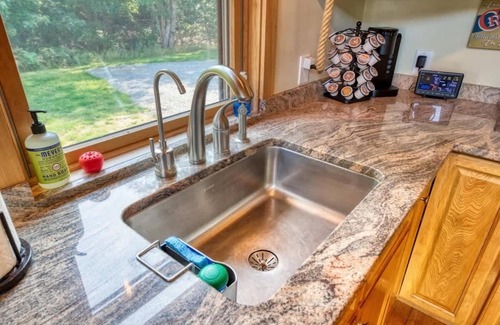 This home has 3,400 square feet of living space, with a large main room which includes a 50'' 4k TV, wood stove, and open kitchen with granite countertops. Downstairs, the giant basement includes 11' tall ceilings, a 75'' 4k TV, multiple couches, and a ping-pong table / pool table.