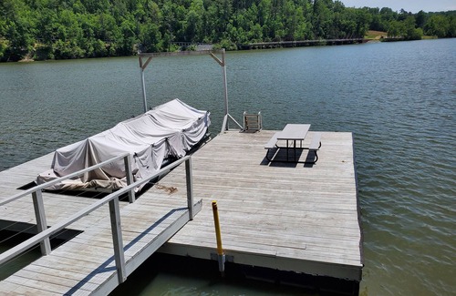 This spacious lake front home will be the ideal place for family and friends to enjoy “time away from home.” Formerly a fishing and hunting camp, Camp Run-A-Muk is nestled on a large private lot with 400' of lakefront and is full of fun! Relax on the lakefront deck, splash in the lake, hide away on the covered deck with a good book, nap in the hammock, fish off the dock or soak in the 7-person hot tub enjoying the view. Multiple Master ensuite bedrooms (3) provide for privacy and convenience. The sunroom’s wall of windows allows for excellent views of the lake and Carolina blue skies! Dual fully equipped kitchens ensure plenty of room for large family meals. Well equipped with many extras, it’s everything you need to experience the best vacation ever. Just come with the wonderful memories of heading to a summer camp and leave with new memories to cherish forever.