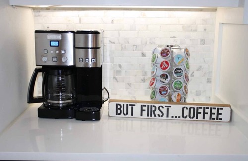 Iron, Ironing Board, Hair Dryers, Keurig, coffee maker, Crock-Pot, Blender, Toaster and Waffle Maker are all provided.