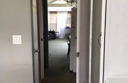 Staying in our quaint Canterbury will not cramp your style. It is cozy and spacious with one bedroom, one bathroom, 3/4 size bathtub/shower, kitchen with apartment size stove, microwave, sink, refrigerator, main dishes, utensils and pots and pans are provided. There is a 12 cup drip coffee pot with deck, 2 outside chairs and fire pit right out the sliding door to enjoy a cup on.