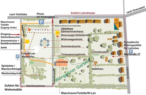 The different sized caravans are very simply furnished. The Non smoking rooms are equipped with bed, z. T. Cabinet / shelf, table and chair, some with mini-kitchen with no running water, with min. A window. The 5 caravans are almost always built with natural materials. They have either 2 separate rooms or without inner walls as a space usable. All caravan except caravans 2 are equipped with electric heaters. A possibly needed cots can be provided by us. From May to autumn, we open on the site the simply equipped summer kitchen for our guests who have no cooking facilities in their accommodation. The nearest shops would be: Plau am See, Meyenburg and Lübz. Shower and toilet are located in the mud house of Wangeliner garden, about 80 meters away. The caravans are very close to the Wangeliner garden, herb garden largest in Mecklenburg-Vorpommern. As our guests have the option of only 1 entry to use the Wangeliner garden anytime. Throughout the year, provides the Wangeliner garden at various events. Whether seminars, workshops, activity days, guided tours, concerts, exhibitions, markets, readings, herbal courses ... We are looking forward to your visit! Our garden café, just a few steps away, is open daily until 18:00 in summer.