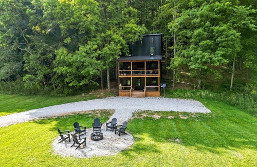 Welcome to Caribou Lodge, your home base for exploring Hocking Hills. This thoughtfully designed lodge features three private bedrooms, each with its own bathroom, plus an extra half bath, making it easy for families or small groups to relax and spread out. Upstairs, the second-floor deck is set up for both comfort and connection, with plenty of seating, a grill for casual cookouts, and an outdoor TV for unwinding in the fresh air. Down below, the entry-level deck is where you'll find the six-person hot tub, tucked into the trees for a peaceful soak. Inside, you'll find a full kitchen, a cozy living room with a large picture window, and a custom stone fireplace that adds just the right amount of warmth after a day of hiking or exploring. The game room includes a poker table for those friendly evening matchups, and the outdoor firepit is the perfect place to wind down, whether it's for quiet conversation or a few shared laughs under the stars. Caribou Lodge offers a relaxed, comfortable setting to make lasting memories in one of Ohio's most scenic spots.