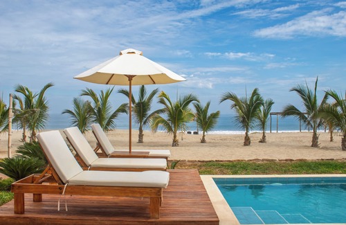This fully equipped beach house has everything you need: cozy linens, fresh towels, a complete kitchen setup, a BBQ area, and a sparkling oceanfront pool.