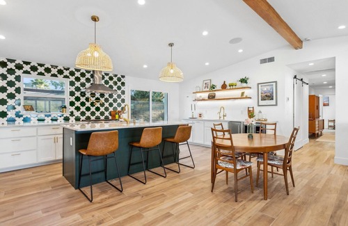 Welcome to your beautifully renovated oasis in the heart of the highly sought-after Lower Arcadia neighborhood. This 3-bedroom, 5-bathroom including an additional Casita including four twin beds and its own half bathroom! This home seamlessly blends modern comfort with desert charm, offering an inviting and spacious layout perfect for families, groups, or long-term stays.