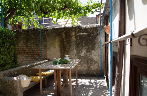 A staircase leads to the terrace with garden, a small vineyard and a table where to enjoy the cool of the shade during summer days. Walking up a few more steps, guests will reach a well-equipped kitchen with table and chairs, with a window overlooking the inner garden.