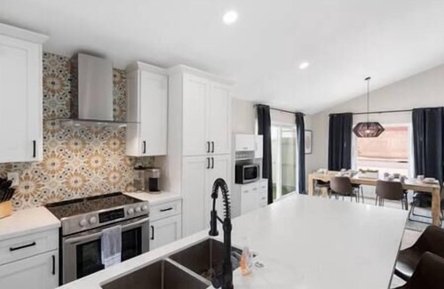 Luxury awaits you in this 3-bedroom home styled with a high-end interior and equipped with top of the line amenities which includes a bedroom with King size bed, a backyard with pool, BBQ grill, and corn hole, and a garage turned into a game room with variety of games! This home's vaulted ceilings and open concept plan indoors also provide an abundance of natural lighting which gives off more comfortability throughout your stay.