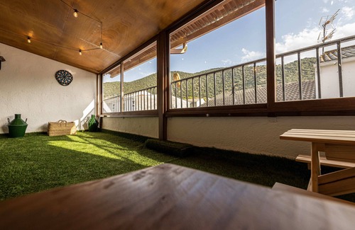 Located in the heart of the town, our house has 4 bedrooms all with double bed and single bed. 2 full bathrooms. American kitchen with table for meals and tv. Large living room to accommodate all guests with an extensive table and comfortable sofas next to the TV and fireplace. Patio with barbecue and terrace with Chill Out area. All rooms and lounge with air conditioning and heating pump. Free parking in the street and surroundings.