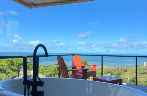 Casa Hierro.. Is Perfect for few couples or families who want to get out of the hustle and bustle of the city while being in a "Relaxed" environment close to nature and the beach; without losing the modern style. The three story Container Home is fully equipped with three rooms with queen/king and full bed, kitchen (stove,Microwave,refrigerator,utensils), living room with TV and A/C everywhere and a BEAUTIFUL MASTER exclusively with a hot tub and a pool in the second floor