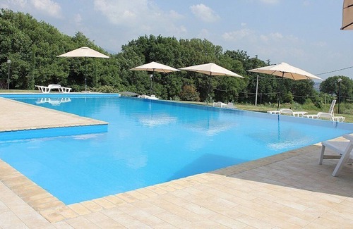 The swimming pool is 14 meters (46 feet) large by 7 meters (23 feet) long, 1.5 meters (5 feet) deep. The area is equipped with tables, chairs, sun umbrellas, deck chairs and sun loungers. From the swimming pool you will enjoy a splendid view of the Sabine hills and of the greenery. You will share the pool with guests staying at 5 other apartments. The swimming pool is open all year round.