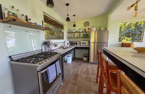 I always have a sourdough starter on hand and can make bread loaves, pizza doughs, cinnamon rolls, or biscuits for our guests! We have an Ooni pizza oven & can also whip up some fresh made sourdough pizzas. And we have tons of fruit trees around our property, so you can feel free to cruise around and grab what is in season — mango or banana, mangosteen, anonna, guanabana, and/or a pipa from our perfectly in-reach coconut palm :)