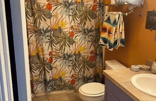 Casita de flor Azul - Cozy Urban Casita has 1 Bedroom , 1 Bathroom, and max occupancy of 3 people. The minimum rental for this property is 1 nights, but this can change depending on the season you plan on staying. Previous guests have rated it 2, and VRBO labeled it a top-rated House because of the excellent services rendered by the owner or manager of this House, and has consistently provided great experiences for their guests. Most families or guests that use it recommend it to their friends and some of them are repeat guests. House has a friendly neighborhood, and the Downtown Albuquerque has interesting places to visit. If you want to learn more about the House in Downtown Albuquerque, such as places to visit and things to do nearby, you can check below to learn more.
