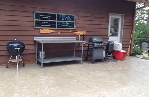 This home rents all year. On the snowmobile trails and within minutes from the Danbury Casino, Bumps bar (walking distance) and Fox run Golf Course. There are also 4-wheeling trails minutes away. Our lake has a public access with a very nice public beach. The lake is at its highest level in years and our beach has a rocky turning to sand frontage, is now underwater, so water shoes are recommended (because of the rocks). However, our water is crystal clear. We have a brand new dock system for 2017 that has a deck for additional seating, chairs, and a ladder. We do have elevation to our shoreline (about 45 steps - depending on the water level).