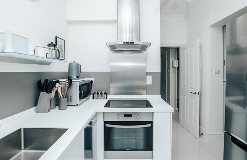 The apartment is nestled between a fantastic variety of coffee shops, restaurants and boutique shops. A Waitrose store is less than 1 minute from the apartment and a small Sainsbury local is within a 1 minute walk. The River Thames can be reached under a 5 minute walk.