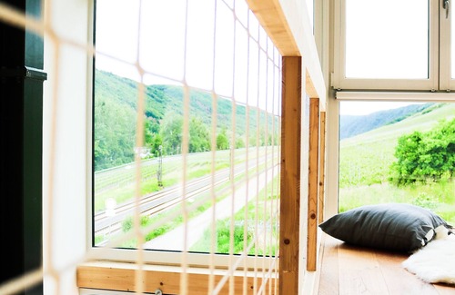 Only 9 km away from the turbulent tourist magnet Cochem, you can enjoy living in our chalet on the outskirts of the village right next to the vineyards. If you want it to be turbulent, just get on the train that runs below the holiday homes in the Moselle valley. (Don't worry - our windows and the entire houses are at the highest possible level of noise insulation and in recent years the railway line on the Moselle has been modernized with so-called "whisper rails"). The way to the train station is only 200 m. In no time you are in Cochem and can reach any other Moselle location - without a car, which you can leave parked in your own garage. You can of course also take your bikes on the train.