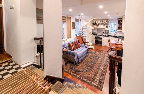 Built more than two hundred years ago, this smoke-free property is arranged over three small floors - connected by a traditional cast iron spiral staircase - and can comfortably accommodate up to four people. On the top floor, there is a bedroom with a super king-size bed. The second bedroom, with two single beds, is on the second floor as is the bathroom which features a walk-in shower. The kitchen and living room area is located on the ground floor. The living room is equipped with a comfortable sofa and armchair, a dining table and a Smart TV. The kitchen is fully equipped with modern appliances and includes all the cooking utensils that you could need to prepare breakfast or an evening meal.