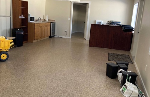 This cool building in Interlochen is the perfect spot for guests looking for a cozy retreat. With 1 bedroom featuring a full bed and a bonus space where we can add more beds if needed. This terrific rental has everything you need for a comfortable stay. There is a kitchenette with small appliances. Would be a great place an individual. couple, family, or a group. There is plenty of space for people to sleep if you bring a camping cot or blowup mattress. Enjoy the heating, and shower amenities provided. Additional full bathrooms available. The building is situated on 20 acres that is connected to 160 acres of state land. Whether you're here for a weekend getaway or an extended stay, this property is sure to make you feel right at home. Feel free to reach out to us during your stay - we're happy to suggest local spots to check out.