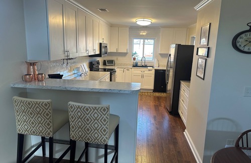 Enjoy a soothing stay at this 2-bedroom apartment in Newton. The cozy space features 2 queen beds, perfect for a relaxing night's sleep. With amenities like AC, WiFi, and a washing machine, guests can feel right at home. The 2 bathrooms come equipped with a hair dryer for added convenience. Plus, there's an additional living room with a full bed for extra space. Feel free to reach out to us during your stay - we're happy to suggest local spots to check out.