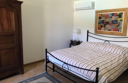 Stay comfortably in San Pietro at this 2-bedroom chalet. Nestled in a serene setting, this fantastic property offers a queen bed, a well-equipped bathroom, and essential amenities like WiFi and AC. Whether you're looking to relax in a pleasant atmosphere or explore the surrounding area, this chalet is the perfect retreat for guests seeking a peaceful getaway. We hope you'll enjoy your stay at our chalet.