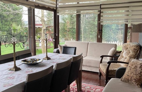 Discover this superb 2-bedroom villa in Sapanca. This beautiful property offers a cozy living room with 3 sofa beds, perfect for relaxing after a day of exploring. With 3 bathrooms and a fully equipped kitchen, guests can enjoy a pleasant stay with all the comforts of home. Whether you're lounging on the queen bed or taking in the fresh air on the terrace, this villa is the ideal retreat for your getaway. Feel free to reach out to us during your stay - we're happy to suggest local spots to check out.