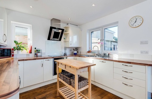 With free parking for two cars, the property also benefits from underfloor heating downstairs and a water softener with filtered water available at the kitchen sink. With bi-fold (concertina) doors opening up onto the patio and garden at the rear of the property we are sure your stay here will be pleasant and relaxing.
