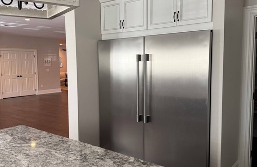 The home boasts five beautifully designed bathrooms, each with premium amenities. After a long day, indulge in the refresh in the modern showers and standard bathtubs. The property includes a convenient washing machine, perfect for longer stays.