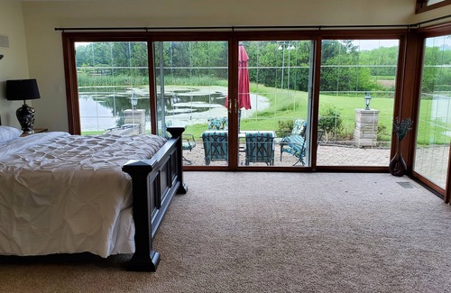 The whole group will be comfortable in this spacious and unique house with 3800 sq-ft on a 30 acre Horse Ranch (Warrior Farm and Ranch) with a main bedroom facing pond. Fire pit outside by outdoor swimming pool(Opens from Labor Day to Memorial Day weekend) Hammock, swing tied to tree. with patios, Pond is stocked with fish. If you want, you can ride a horse for a little fee, We have a few goats and chickens. Very nice and quiet place. We have 40 horse stables on the property and are fully booked. Please do not feed the horses