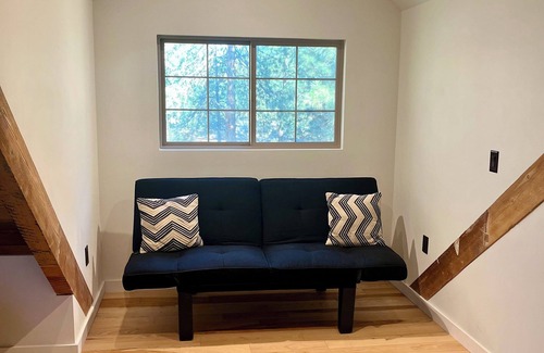 Relax with the whole family at this newly-renovated charming two-story chalet with a large loft in desirable Southwest Bend. Minutes from downtown, 30 minutes to Mount Bachelor. Situated on over half an acre on a beautiful waterway adjoining forested land. Enjoy a chef's kitchen with copper sink in a home built of hardwood (hickory, oak, and cedar) with beautiful exposed beams.