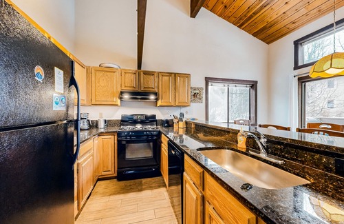 You deserve a break from the daily grind, and this classic Ketchum vacation home offers fantastic views overlooking Trail Creek, a community hot tub, and an unbeatable location less than a mile from lifts at River Run. Come with friends or family for the outdoor recreation, and end up staying a few extra days for the art galleries, restaurants, and shops! The condo offers a deck overlooking the creek and inside views of the slopes on Baldy. In winter, hop on the nearby River Run lifts, or explore all of Bald Mountain in search of perfect powder. In summer, the resort provides hiking and mountain biking trails, and you can even fish for your dinner in the Big Wood River. No matter how you spend your day, a soak in the community hot tub will leave you refreshed to do it all over again! The second-floor space provides new appliances, including WiFi and an X-box. You'll stay cozy while watching DVDs thanks to a fireplace and a fully-equipped kitchen will help you create hearty meals for long days outdoors. Enjoy meals around the dining table, or eat sausages straight off the gas grill on the deck outside.