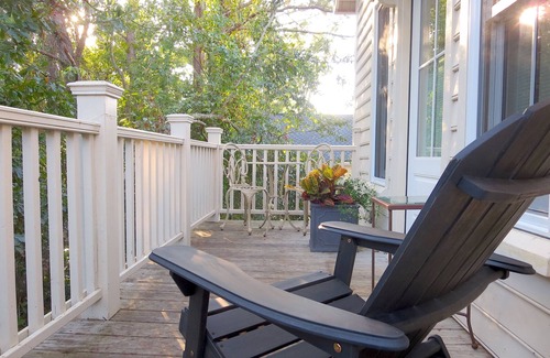 Two-story, one bedroom, one bath, furnished apartment with its deck overlooking I'On's Rookery in Mount Pleasant.
