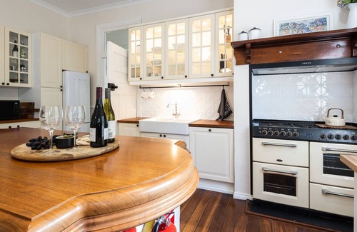 There are two king beds, a modern bathroom and separate toilet. The comfy lounge has a TV. The dining area has a wood fire and both the kitchen and bbq area are well equipped. The bedrooms and living area have air conditioning. There are seating options around the verandah to take in all the garden views and a hidden daybed for relaxing with a book.
