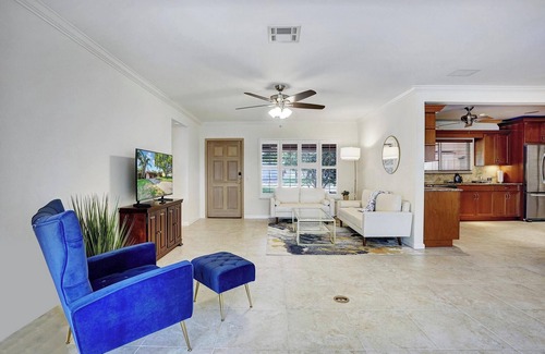 Quite and Cute home. Spacious 2 bedroom 2 bathroom fully stocked house with washer and Drier. Great screened in porch and back yard space. Just 0.7 mile from Pompano beach and Atlantic blvd restaurants and bars, great for a relaxing walk or an $8 uber ride. The home is just down the road from Houston's bar and restaurant.