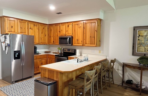 Escape to this tranquil 6-bedroom lake-front cabin retreat on Lake Martin in Equality. Two bedrooms offer king beds and en-suite bathrooms, and two bedrooms (one king and one queen) share a full bath on first floor. Full kitchen and den area are also on the first floor. The downstairs area offers a kid's den with tv and ping pong table, two bedrooms, and a full bath. One bedroom has two sets of bunk beds and a trundle, and the other offers a bunk bed and two twin beds. Whether you're enjoying the fresh air on the large screened porch or cozying up by the fireplace, this peaceful cabin is the perfect getaway for your next family vacation. There is room for everyone! Great location. You can take a 5 minute drive to eat at The Landing, or rent a boat and go to Kowaliga on a 10 minute boat ride. Sorry, no pets. We're happy to assist with any questions while you stay at our cabin.