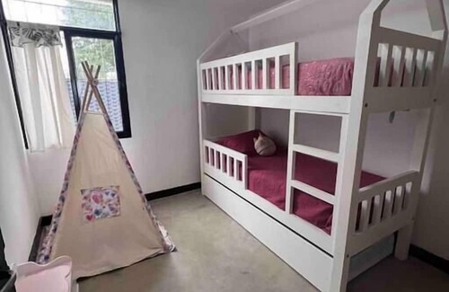 Discover our inviting 3-bedroom family residence nestled in Lujan's bustling heart, offering swift access to the city center, leisure facilities, vineyards, and sought-after attractions. Our home features a well-equipped kitchen with a professional gas range,generously sized bedrooms, with 2 sets ofbunk beds (1equipped with a fun slide!) each having anextra pull-out bed on wheelsand toys for children.Experience relaxation outdoors, featuring apool, barbecue and some green space perfect for yoga.