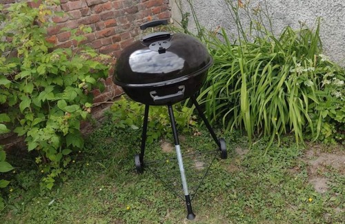 50m² garden with garden furniture and a charcoal barbecue.