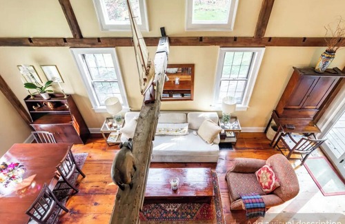 The cabin was built in the 1850s and features wide pine floors, hand-hewn beams and heirloom antiques. But it has been updated with all new high-end appliances (2023), a great sound system and a sparkling clean hot tub.