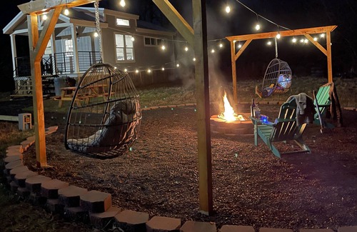 Relax with your family at our charming tiny home tucked away on 60 acers of land surrounded by a scenic natural view.
