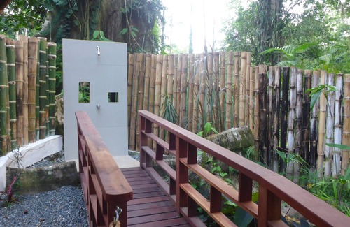 Charming Villa with pool surrended by the Jungle and a river. 1 Bedroom with king size bed, Television, wifi and Air Conditionned,i-phone speakers. living room and fully equiped kitchen. The Villa is located on a private and gated property, 24 hours guarded by the owners, with private entrance and private parking space. The sofa of the living room can be change as a single bed. The villa is for a maximum of 3 persons. All linens and towels are include. The property is at 900 meters from Cocles beach and at 3 km from the town of Puerto Viejo