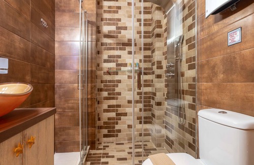 For the best relaxation experience available, enjoy a hot shower any time of the day or night in a tempered glass cabin with artificial rain effect and then relax in a leather massage armchair. If you own a netflix account,watch your favorite movies or shows in a full HD 43" smart TV that also connects to the internet. For a nice and cozy sleep, there is a Queen size bed or two seperated comfy beds, all equipped with the Comfort Collection of the most popular Media Strom mattresses.