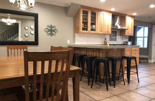 Sleeps 16! - 7 private bedrooms! - Newly remodeled home - 5 miles to BYU, 5 miles to MTC, 1 mile to UVU, 14 Miles to Sundance Ski Resort! Beautiful private home situated in a quiet neighborhood just 1 minute drive from the I-15 freeway access in central Orem. We are conveniently situated near the 2 large Universities in the Orem/Provo area. Shopping, Grocery, restaurants, and entertainment are all within a few short minutes drive and only blocks away. Master bedroom with high-end bathroom/spa complete with On-demand Hot Water heater (endless hot water showers), Steam sauna, 3 foot long rain forest shower head, and more. Electronic piano to enjoy or entertain your guests. Theater room with stadium seating and 120" projection screen with surround sound that is Xbox, Wii, and Playstation compatible for an incredible gaming experience. Hi speed WiFi internet access. Security system to protect your valuables. This is a fantastic family friendly home that has a full-service kitchen that was custom designed for the cook in mind: 4-burner gas cooktop, double wall ovens, Blendtec blender, Kitchenaid mixer, large natural gas outdoor grill, and much more! Full size competition table tennis in game room for spirited family competitions! Public tennis courts are a 5-minute walk away.
